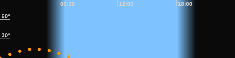 | Untergang | 07:20 Uhr im Südwesten (αAz = 228,2°) |