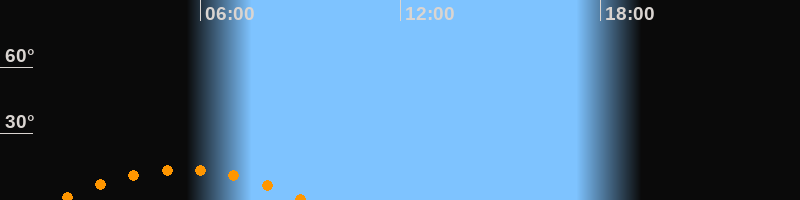 | Untergang | 09:08 Uhr im Südwesten (αAz = 228,2°) |