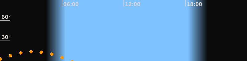 | Aufgang | 23:27 Uhr im Südosten (αAz = 131,8°) |
