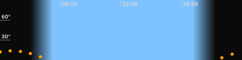 | Untergang | 04:50 Uhr im Südwesten (αAz = 228,2°) |