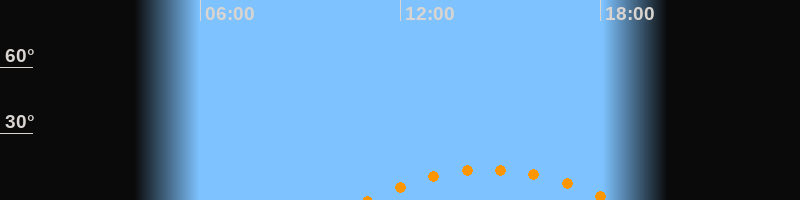 | Untergang | 18:21 Uhr im Südwesten (αAz = 228,2°) |