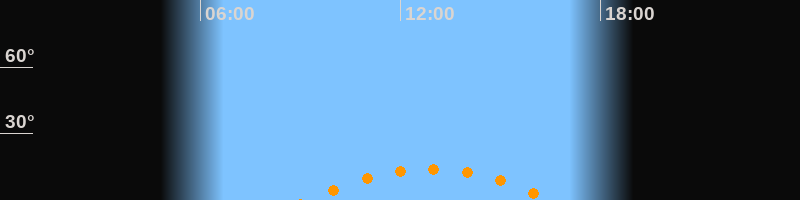 | Aufgang | 09:11 Uhr im Südosten (αAz = 131,8°) |