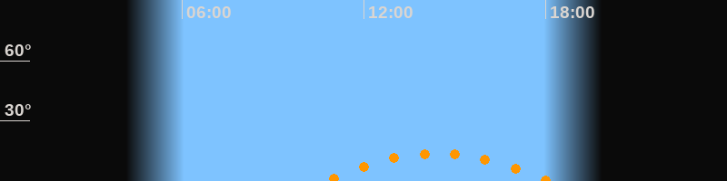 | Aufgang | 10:43 Uhr im Südosten (αAz = 131,8°) |