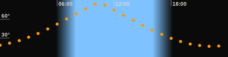 | Höchster Stand (Kulmination) | 10:21 Uhr (h = 84,4°) |