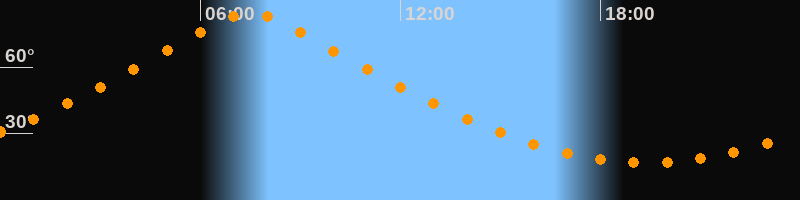 | Höchster Stand (Kulmination) | 07:29 Uhr (h = 84,4°) |