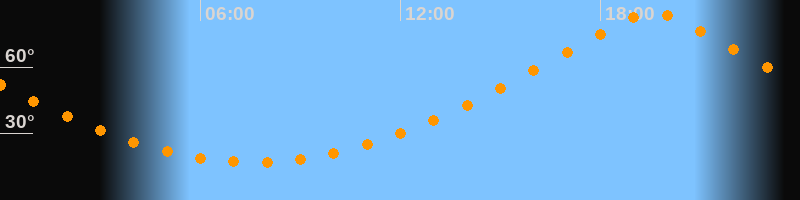 | Höchster Stand (Kulmination) | 19:35 Uhr (h = 84,4°) |