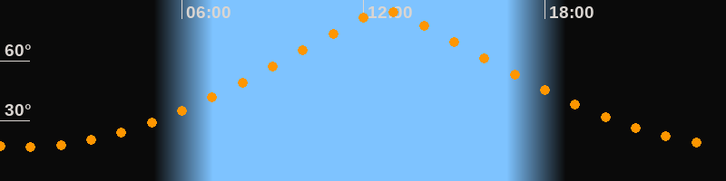 | Höchster Stand (Kulmination) | 12:45 Uhr (h = 84,4°) |