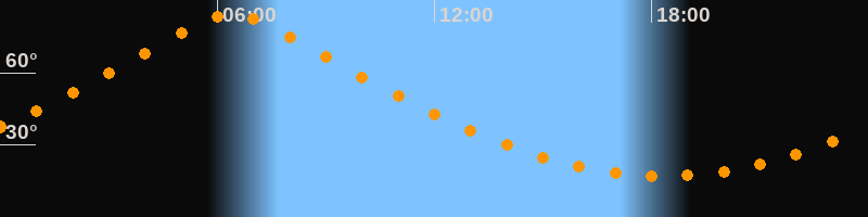 | Höchster Stand (Kulmination) | 06:23 Uhr (h = 84,4°) |