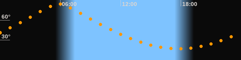 | Höchster Stand (Kulmination) | 05:50 Uhr (h = 84,4°) |