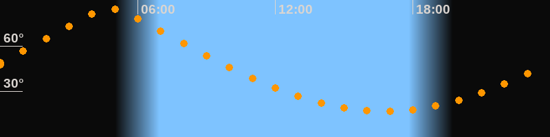 | Höchster Stand (Kulmination) | 04:48 Uhr (h = 84,4°) |
