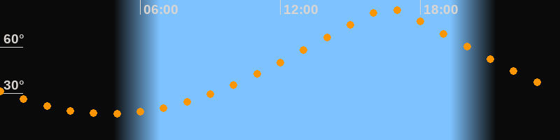 | Höchster Stand (Kulmination) | 16:38 Uhr (h = 84,4°) |