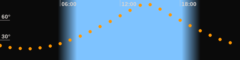 | Höchster Stand (Kulmination) | 14:36 Uhr (h = 84,4°) |