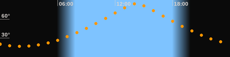 | Höchster Stand (Kulmination) | 14:12 Uhr (h = 84,4°) |