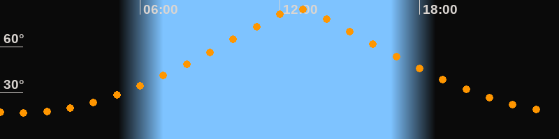 | Höchster Stand (Kulmination) | 12:48 Uhr (h = 84,4°) |