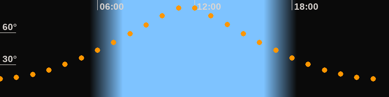 | Höchster Stand (Kulmination) | 11:30 Uhr (h = 84,4°) |