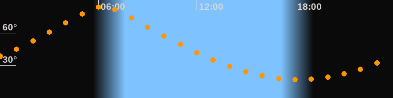 | Höchster Stand (Kulmination) | 06:16 Uhr (h = 84,4°) |