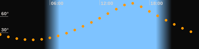 Höchster Stand (Kulmination)15:45 Uhr (h = 84,4°)