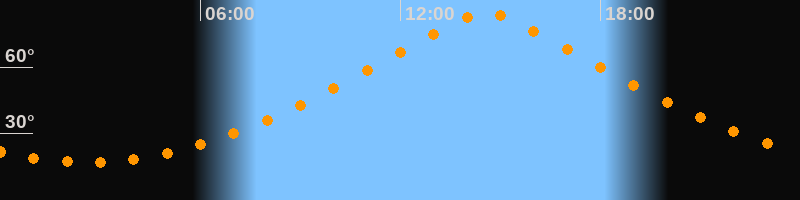 | Höchster Stand (Kulmination) | 14:34 Uhr (h = 84,4°) |
