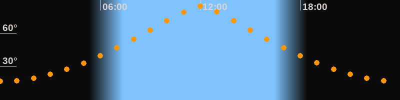| Höchster Stand (Kulmination) | 12:00 Uhr (h = 84,4°) |