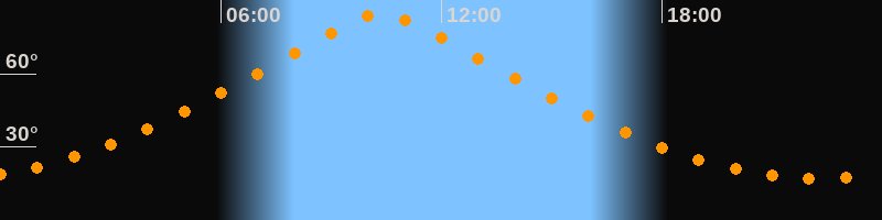 | Höchster Stand (Kulmination) | 10:22 Uhr (h = 84,4°) |