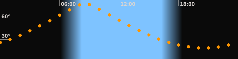 | Höchster Stand (Kulmination) | 08:32 Uhr (h = 84,4°) |