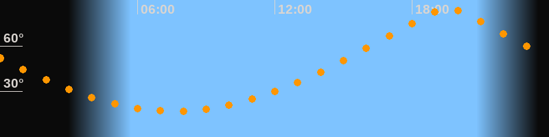 | Höchster Stand (Kulmination) | 19:34 Uhr (h = 84,4°) |