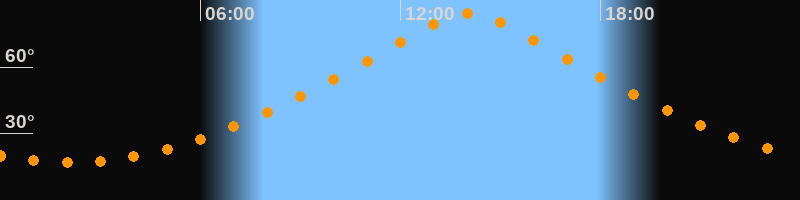 | Höchster Stand (Kulmination) | 14:03 Uhr (h = 84,4°) |