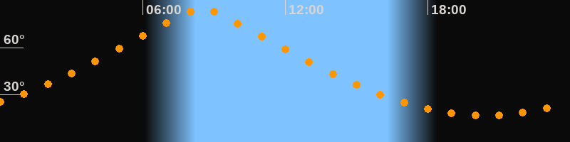 | Höchster Stand (Kulmination) | 08:28 Uhr (h = 84,4°) |
