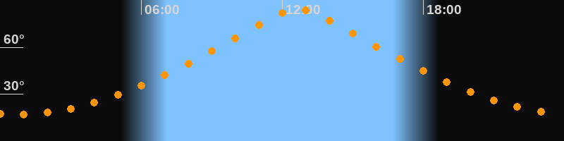 | Höchster Stand (Kulmination) | 12:40 Uhr (h = 84,4°) |