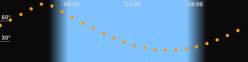 | Höchster Stand (Kulmination) | 04:14 Uhr (h = 84,4°) |