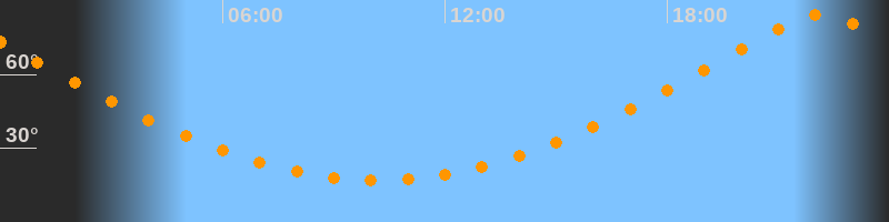 | Höchster Stand (Kulmination) | 22:09 Uhr (h = 84,4°) |