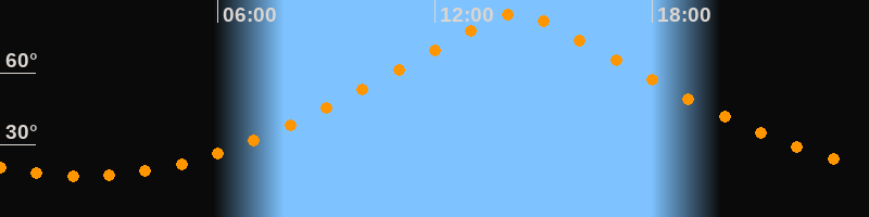 Höchster Stand (Kulmination)14:15 Uhr (h = 84,4°)