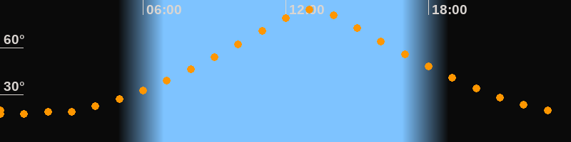 | Höchster Stand (Kulmination) | 13:07 Uhr (h = 84,4°) |