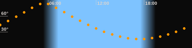 | Höchster Stand (Kulmination) | 05:31 Uhr (h = 84,4°) |
