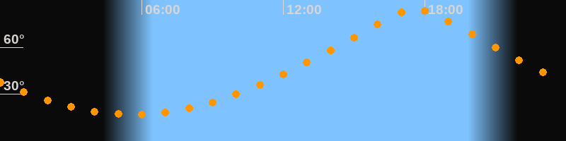 | Höchster Stand (Kulmination) | 17:36 Uhr (h = 84,4°) |