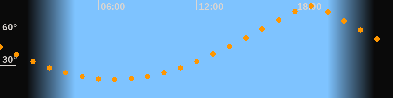 | Höchster Stand (Kulmination) | 18:56 Uhr (h = 84,4°) |