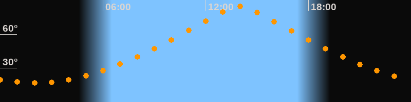 | Höchster Stand (Kulmination) | 13:59 Uhr (h = 84,4°) |
