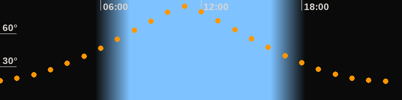 | Höchster Stand (Kulmination) | 11:02 Uhr (h = 84,4°) |