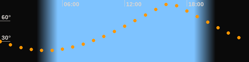| Höchster Stand (Kulmination) | 16:21 Uhr (h = 84,4°) |