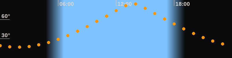 | Höchster Stand (Kulmination) | 13:44 Uhr (h = 84,4°) |