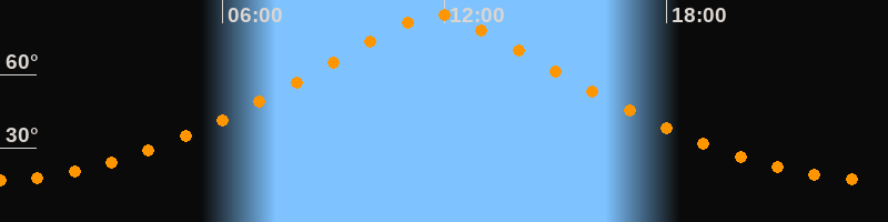 | Höchster Stand (Kulmination) | 11:46 Uhr (h = 84,4°) |