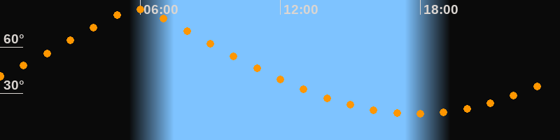 | Höchster Stand (Kulmination) | 05:52 Uhr (h = 84,4°) |