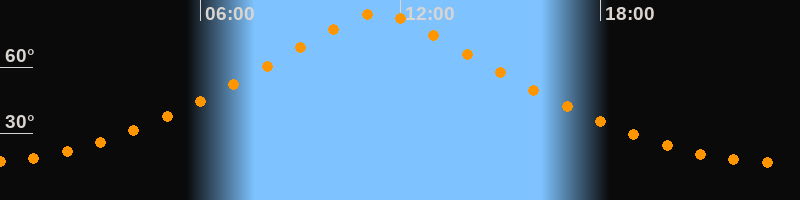 | Höchster Stand (Kulmination) | 11:19 Uhr (h = 84,4°) |