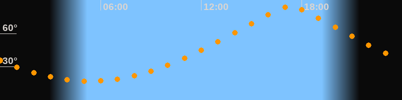| Höchster Stand (Kulmination) | 17:18 Uhr (h = 84,4°) |