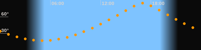 | Höchster Stand (Kulmination) | 17:02 Uhr (h = 84,4°) |