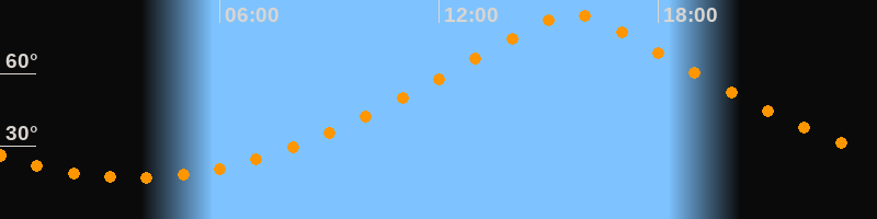 | Höchster Stand (Kulmination) | 15:39 Uhr (h = 84,4°) |
