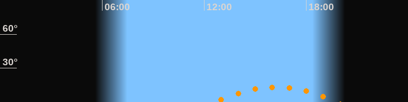 | Aufgang | 12:34 Uhr im Südosten (αAz = 132,8°) |