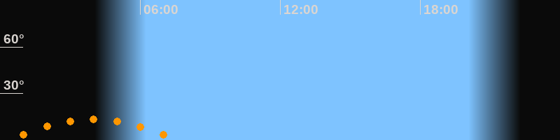 | Untergang | 07:36 Uhr im Südwesten (αAz = 227,2°) |