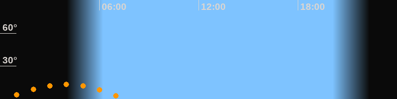 | Untergang | 07:34 Uhr im Südwesten (αAz = 227,2°) |