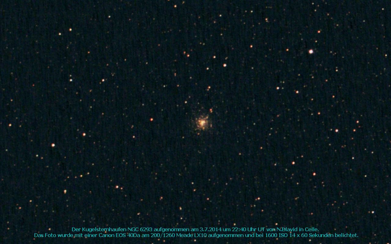 NGC 6293 ist ein Kugelsternhaufen der Kategorie IV. Entdeckt wurde das Objekt am 24. Mai 1784 von Friedrich Wilhelm Herschel.